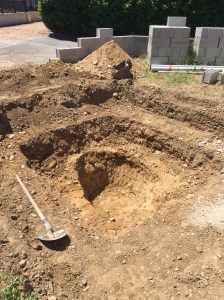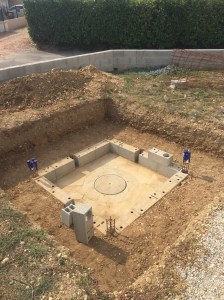 – Ou ma methode creuser une premiere partie jusqu’au assises et enfin creuser le seuil pour les pieds et re creuser pour une buse de puit perdu voir plus selon le type de sol.