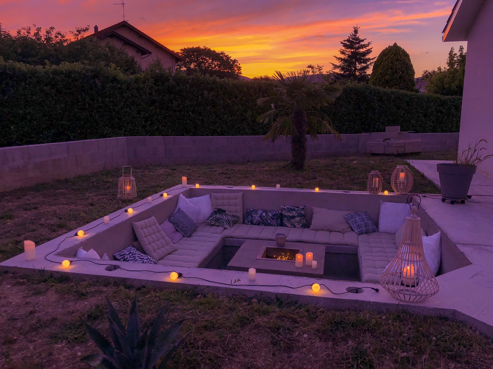 Alors tout simplement car nous aimons recevoir nos amis, nous voulions un endroit convivial et pour le coup unique et pas vu! Nous voulions aussi ne pas avoir à acheter de salons de jardins (qui s’abîment très vite en extérieur, et qui avec le temps se démode!)
